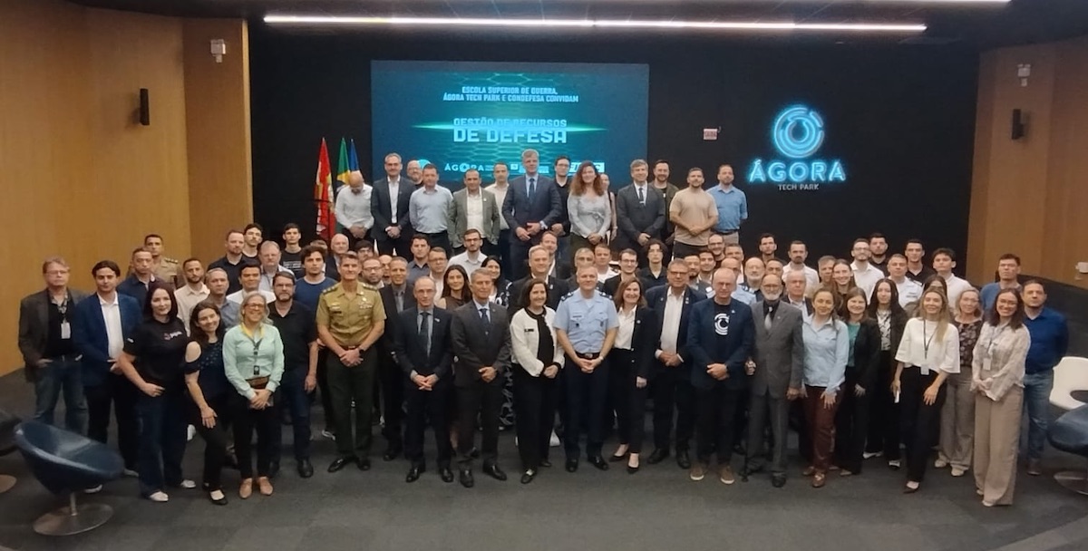 O Ágora Tech Park sediou, no dia 26.11, o 2º Seminário de Gestão de Recursos de Defesa, iniciativa da Escola Superior de Guerra em parceria com o CONDEFESA/FIESC e o próprio parque tecnológico. O encontro aproximou lideranças das Forças Armadas (Exército, Aeronáutica e Marinha), empresários, pesquisadores e representantes governamentais, com foco em explorar oportunidades estratégicas para a Base Industrial de Defesa (BID) e fortalecer a integração entre defesa, indústria e inovação em Santa Catarina.